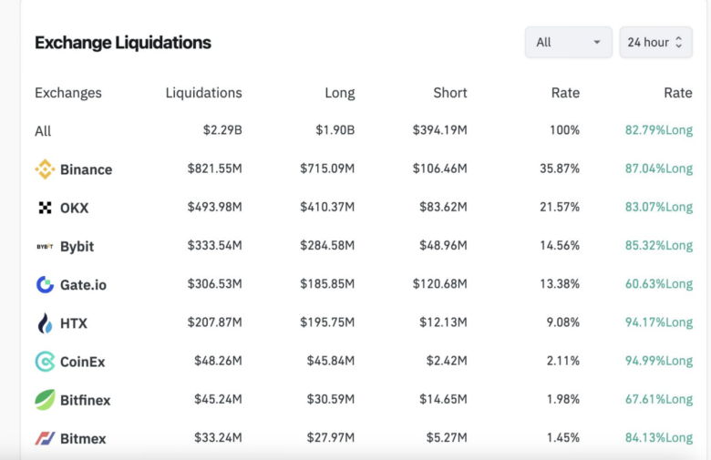 正如Bybit创始人兼CEO在抛售后发布的推文所说,仅Bybit就造成了21亿美元的爆仓,而Coinglass报告的数据仅为3.33亿美元。